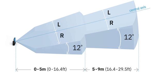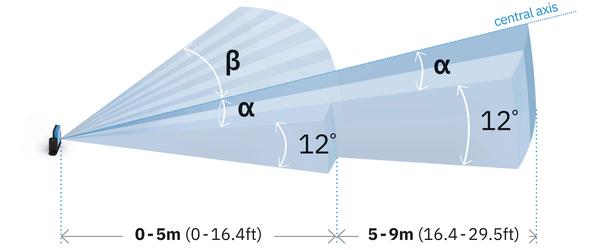 垂直覆盖角度为 12°,扩展范围为 9 米